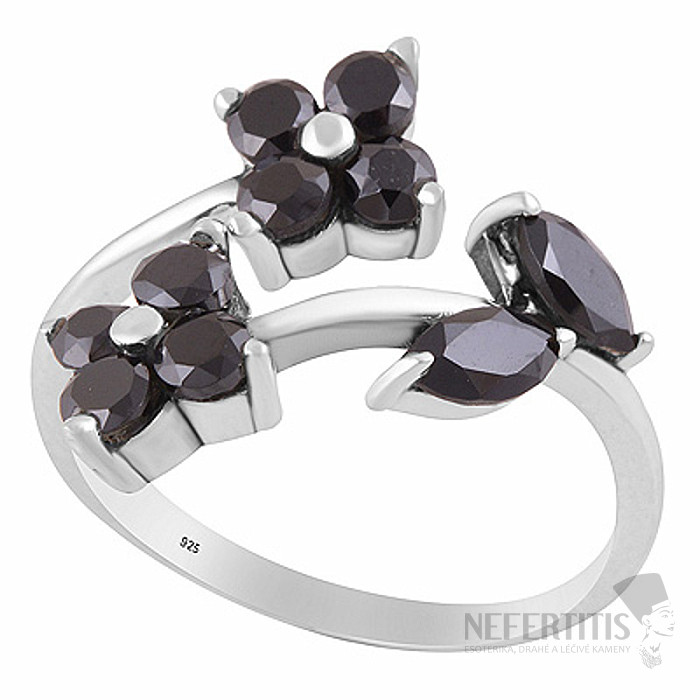 • Stylish silver ring with onyx floral design