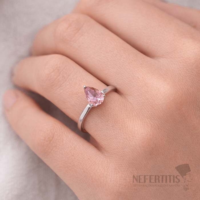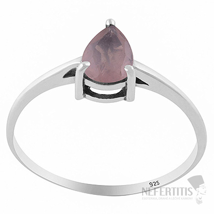 The dominant feature of the ring is a natural rose quartz measuring approximately 7 mm, cut into a pear shape with a precise facet cut , which gives the stone a subtle shimmer and highlights its delicate color.